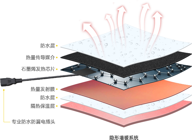 管線預(yù)埋在墻面里,最高工作溫度可達(dá)到50°C,不會(huì)成為著火源,發(fā)熱溫度分配均勻,不會(huì)出現(xiàn)局部過(guò)熱。